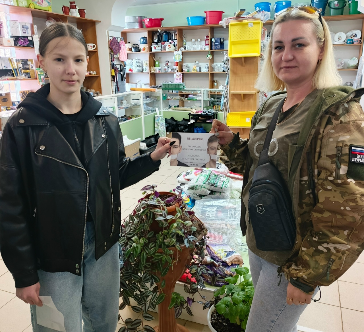 Ребята раздавали прохожим информационные листовки, призывая взрослых и подростков быть бдительными и не оставаться равнодушными к чужой беде. Особое внимание волонтеры уделили местам массового скопления людей: они расклеили наглядные материалы у магазинов, на центральной площади поселка и в отделении почты.